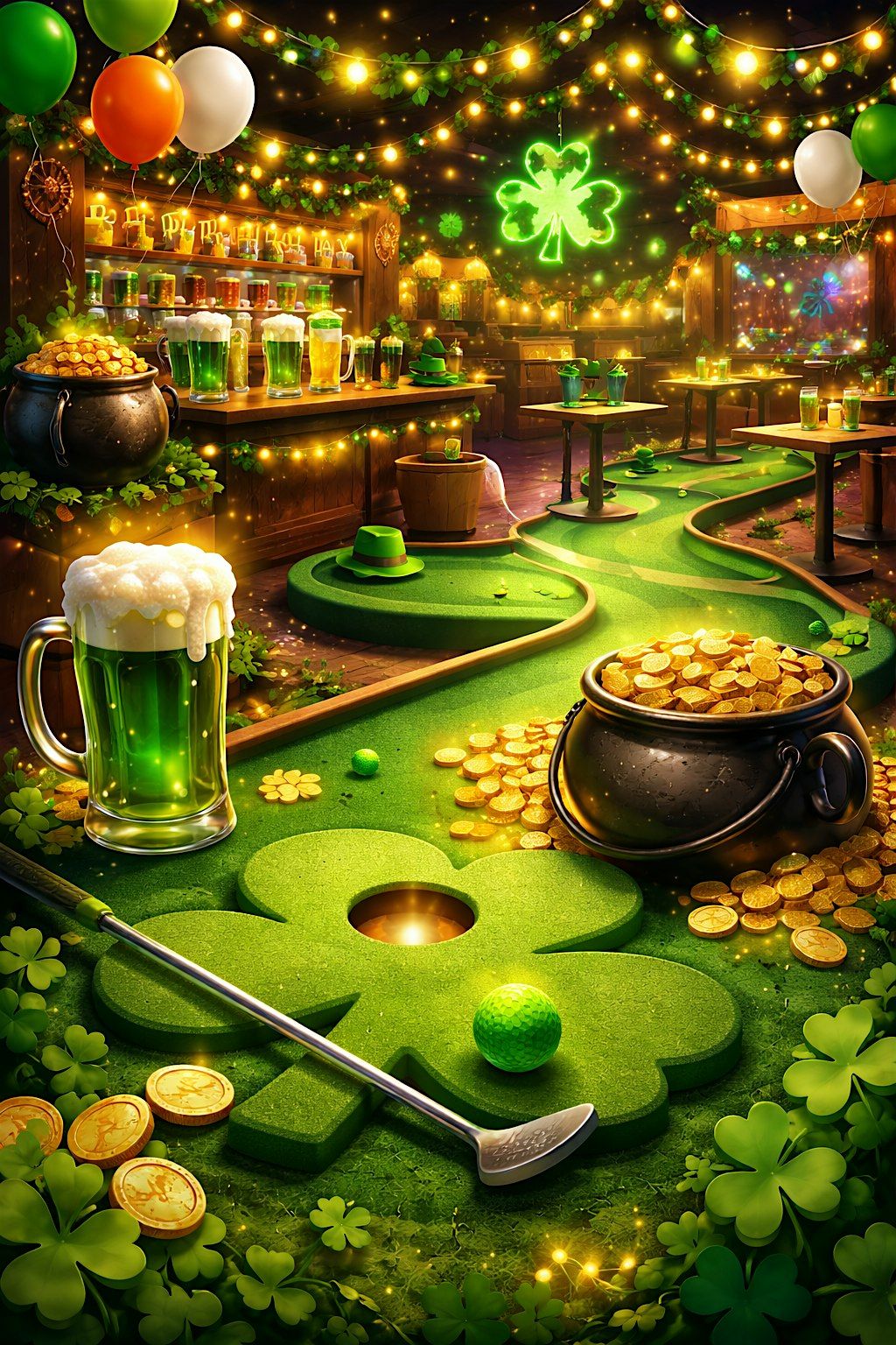 Waited too long to sign up for a St. Patty's Day package? Frustrated at the insane "LAST CALL" prices all around? Don't want to spend the entire day standing around? Big Mini's got you covered. $60 gets you unlimited beer, wine, select liquors*, and - of course - mini golf from 3-5 PM.