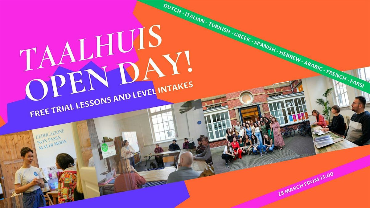 Do you want to learn a new language? Come to meet our teachers, learn more about our school and language courses, and experience a free Arabic, Dutch, Farsi, French, Greek, Hebrew, Italian, Spanish, or Turkish trial lesson before making a decision.