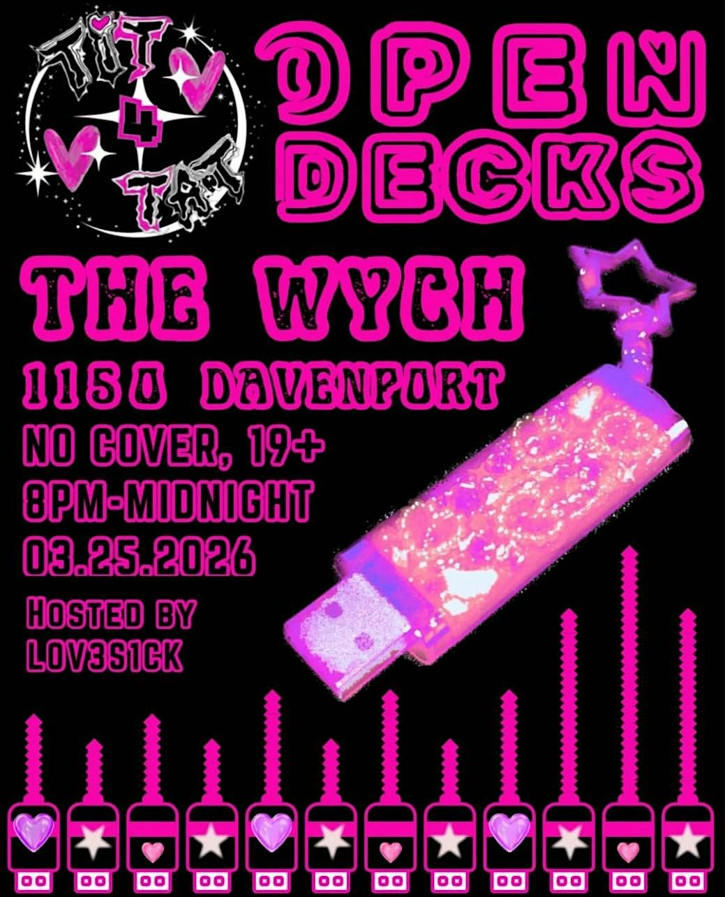 Open Decks is all about trying new sounds, testing unreleased tracks, building fresh mixes, and creating in real time. Whether you're stepping up to spin or coming through to discover what’s next, expect an atmosphere that’s raw, welcoming, and electric.
