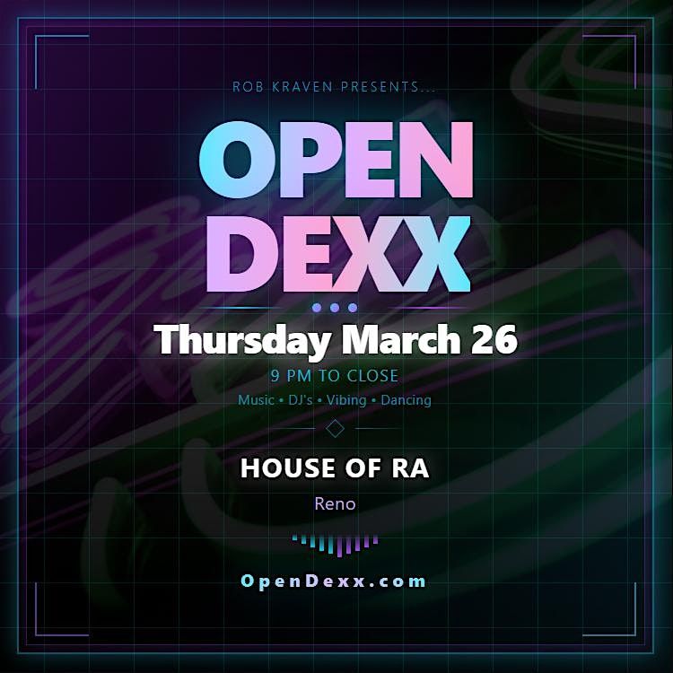 Rob Kraven Presents OPEN DEXX. A cross genre EDM focused surprise lineup of DJ's from Reno and beyond, at House of RA, Reno's vibiest spot.About this Event
