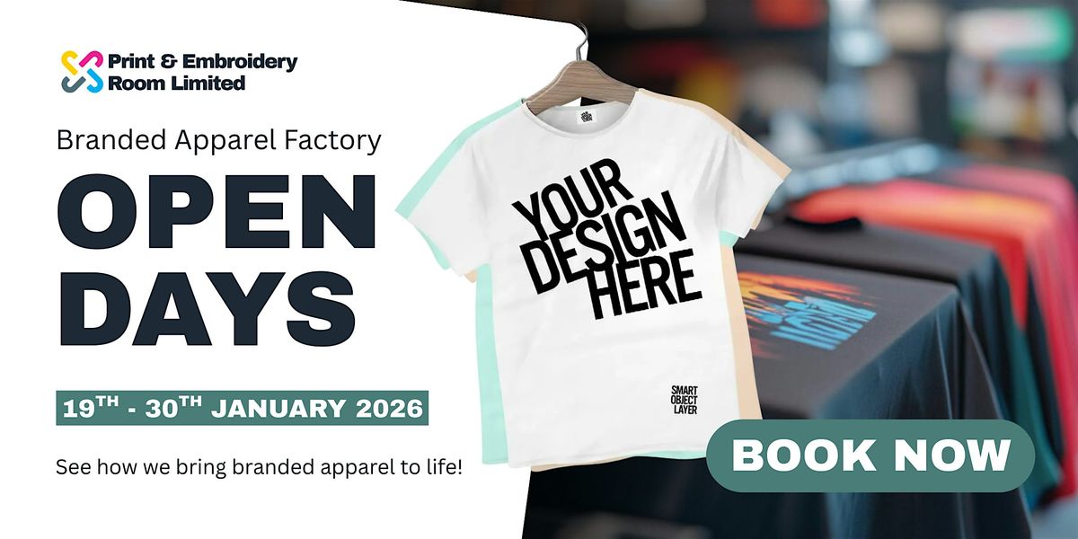 We’d like to invite you to our Open Factory Days – a chance to see exactly how Print & Embroidery Room brings branded garments, promotional apparel and work‑wear to life.