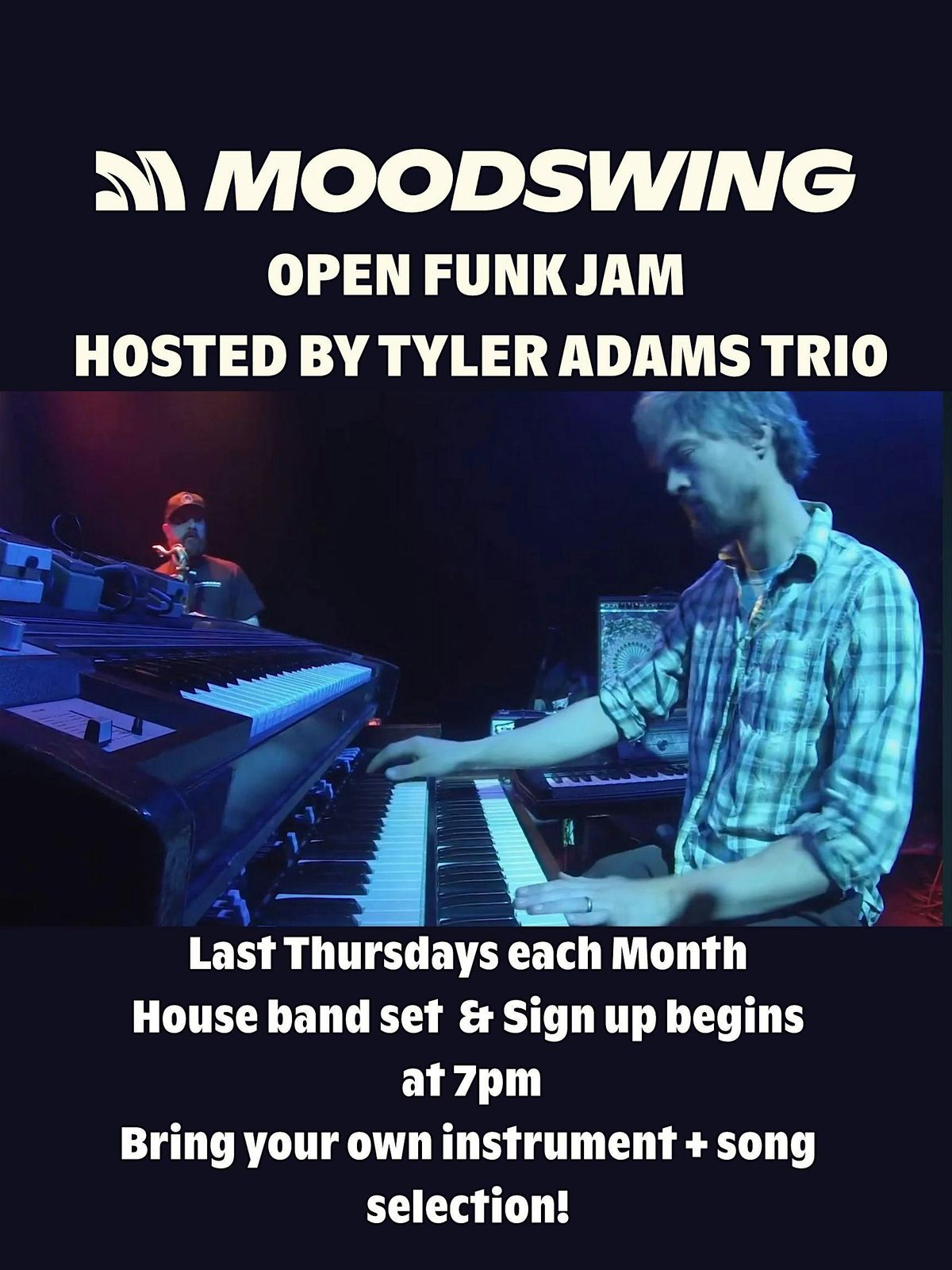 Get ready to groove at our Open Funk Jam featuring the electrifying Tyler Adams Organ Trio! This is an in-person session where funk lovers and musicians come together to jam, vibe, and have a blast. Whether you're playing or just want to soak up the tunes, this night promises good energy and even better music. Don’t miss out on the funky rhythms and great company! Musician sign up and house band set starts at 7pm!