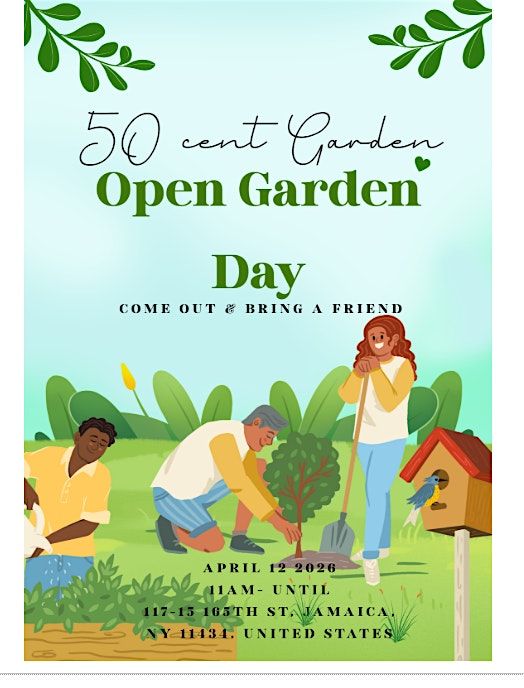 Join us for a refreshing day outdoors at the 50 Cent Garden Open Garden Day! This special event invites community members, families, and nature lovers to come together, explore the beauty of the garden, and connect with others who share a passion for greenery and growth. Whether you're an experienced gardener or just curious to learn, you’ll enjoy hands on activities, a welcoming atmosphere, and the chance to bring a friend along for the experience.