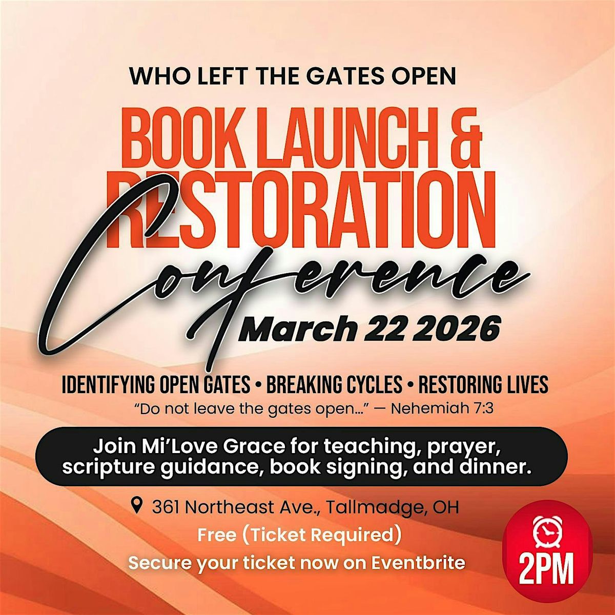 Join Mi’Love Grace for a transformative book launch and restoration conference. Discover how to identify open gates caused by trauma, abuse, and generational cycles — and learn to close them through truth, prayer, and restoration. Attendes are encouraged to bring family & friends.