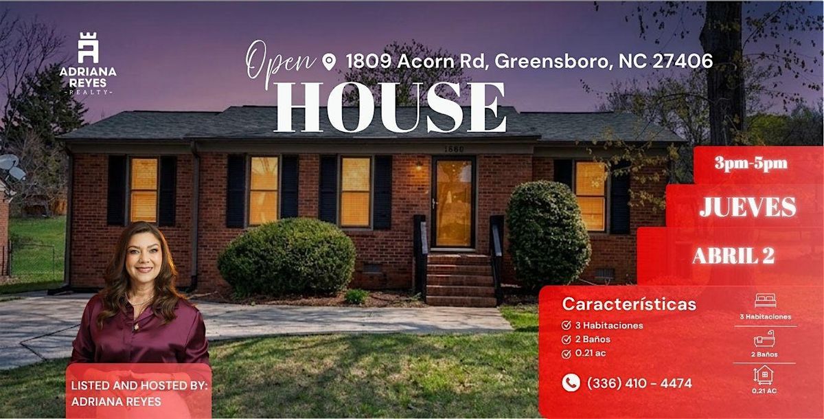 Te invitamos a un exclusivo Open House en esta encantadora propiedad ubicada en 1809 Acorn Rd, Greensboro, NC 27406. Ven a recorrer este hermoso hogar, conocer cada detalle y visualizar tu futuro aquí