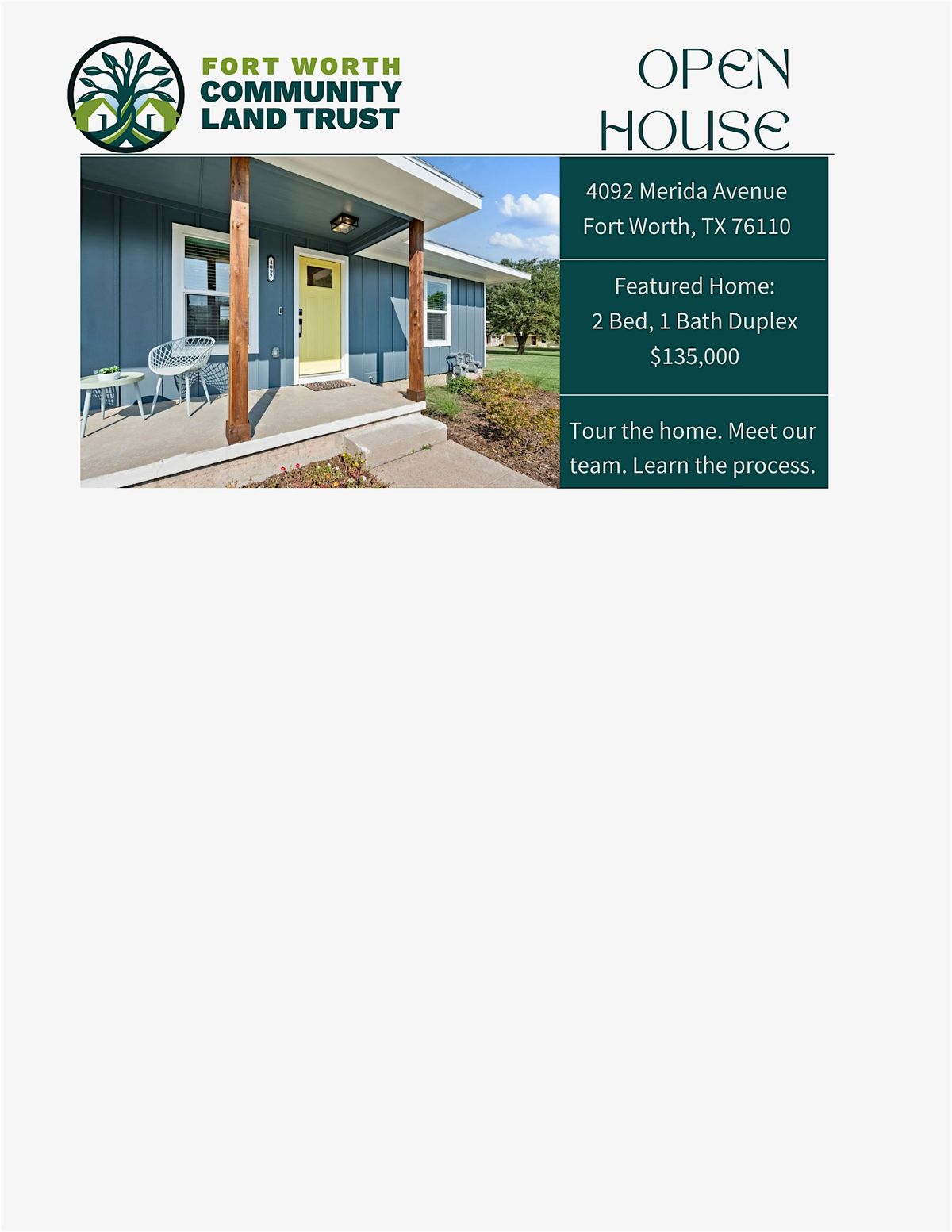 Explore affordable homeownership at Fort Worth Community Land Trust’s Carroll Park Open House. Meet our staff & learn how the process works.About this Event