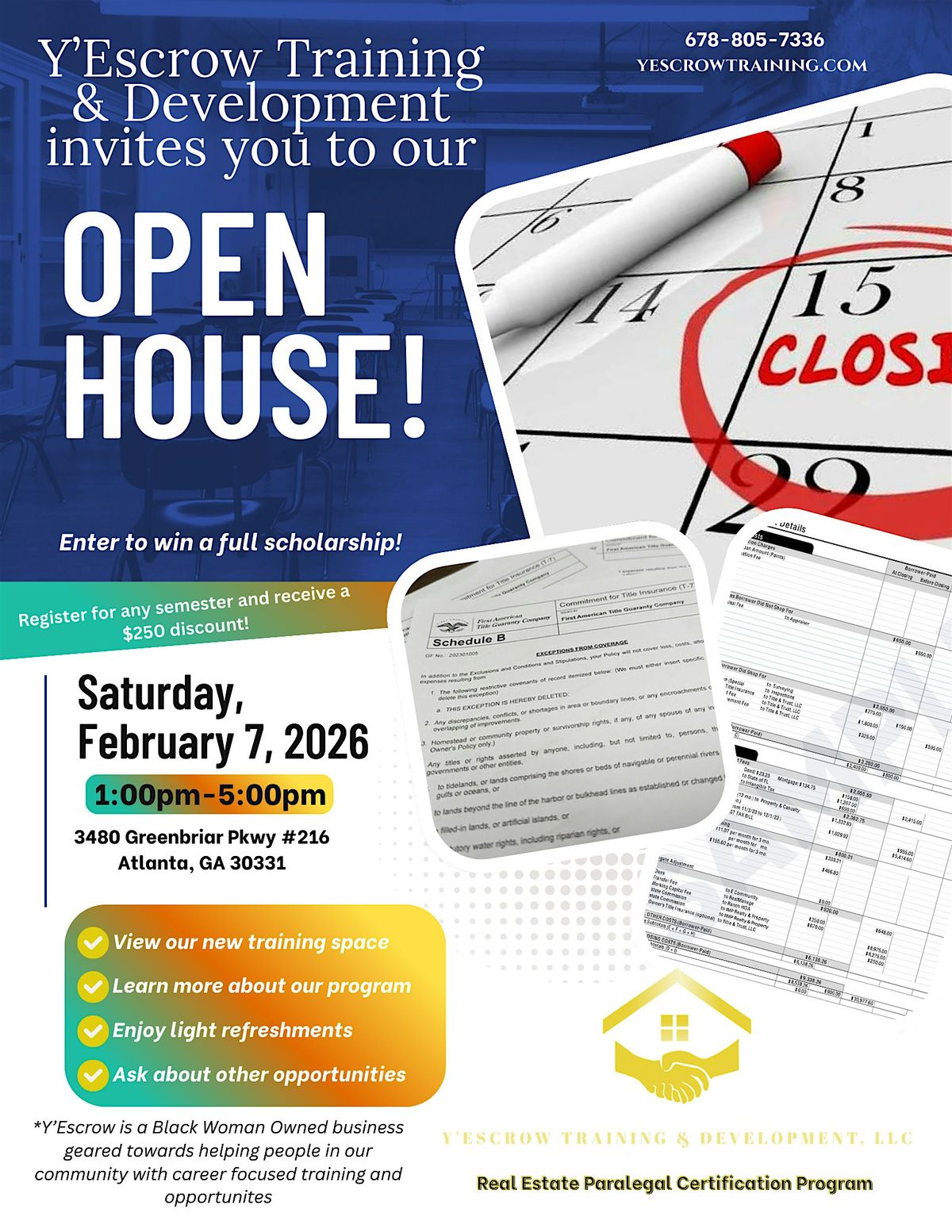 Y'Escrow Training & Development - Greenbriar, 3480 Greenbriar Parkway Southwest, Atlanta, United States