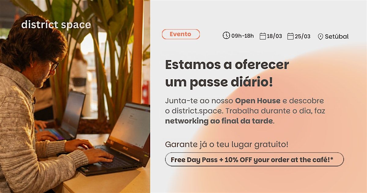 Durante o nosso Open House, abrimos as portas do District Space para que possas experimentar um dia no nosso cowork na prática, com um passe diário gratuito.