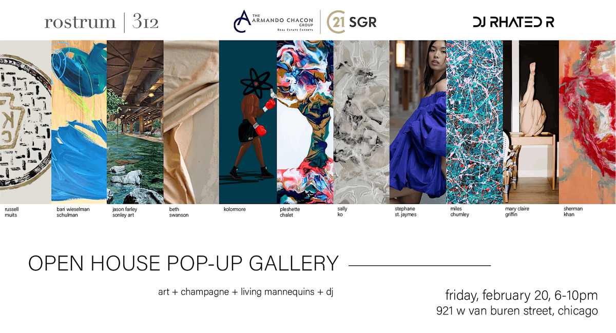 We have a 5,000 square foot loft listing in the west loop we're filling with art, music and living mannequins. Fashion Designer Stephane St Jaymes will be showcasing his designs on models walking the space. We will have champagne and NA (non alcoholic) bubbles from Nouvie - a chicago-based, female-founded NA sparkling wine. Each guest will receive two drink tickets.