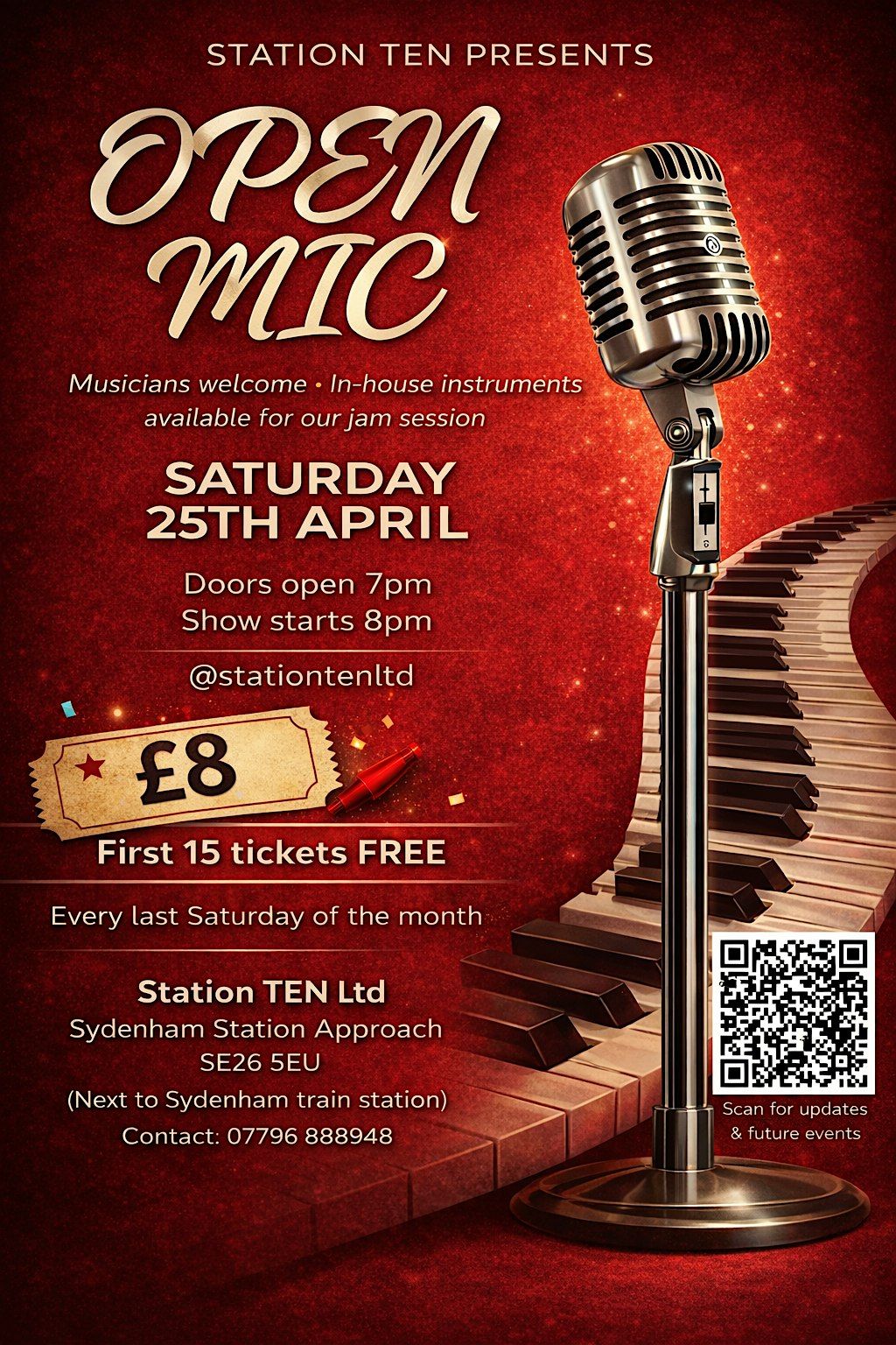 Expect a mix of live bands or guest musicians bringing the rhythm, alongside open mic slots for anyone ready to take the stage. Weβre fully equipped too β with a PA system ready to connect your aux or device if needed, so you can come prepared or plug straight in.