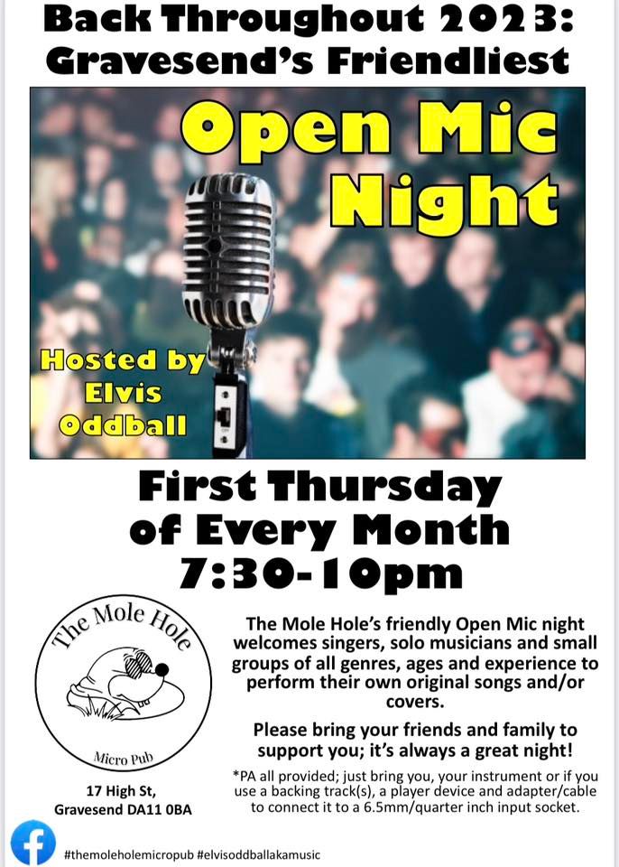 The Mole Hole’s friendly Open Mic night welcomes musicians and singers of all genres, ages and experience to come and perform their own songs or covers. Bring your friends and family, it’s always a great night.