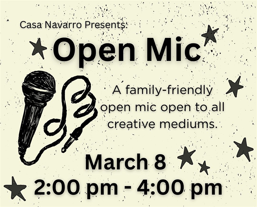 Join us for a family-friendly open mic where performers are invited to share poetry, music, storytelling, and more in a welcoming, all-ages setting. We ask that all material be appropriate for general audiences.