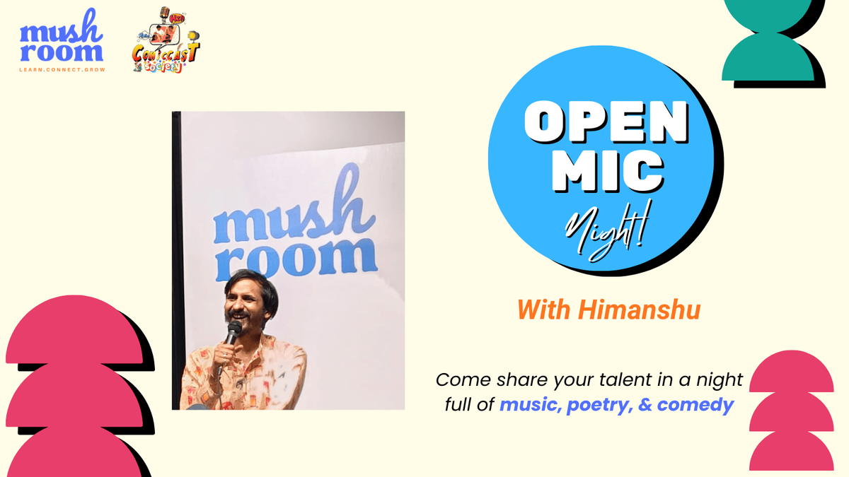 🎤 Open Mic Saturdays at Mushroom Studio!Get ready for an inspiring and energetic Open Mic Evening Saturday at 7:30 PM at Mushroom Studio, Harlur!This is a warm, community‑driven space open to artists of all kinds—comedians, storytellers, poets, singers, musicians, instrumentalists, and anyone eager to share their art. Whether you're trying something new or polishing your craft, the stage is all yours. Join us to perform, collaborate, or simply sit back and enjoy a relaxed evening filled with creativity, connection, and great vibes. Let’s come together to celebrate art and build a thriving creative community.Step up, express yourself, and be part of an unforgettable, talent-filled evening! 🌟