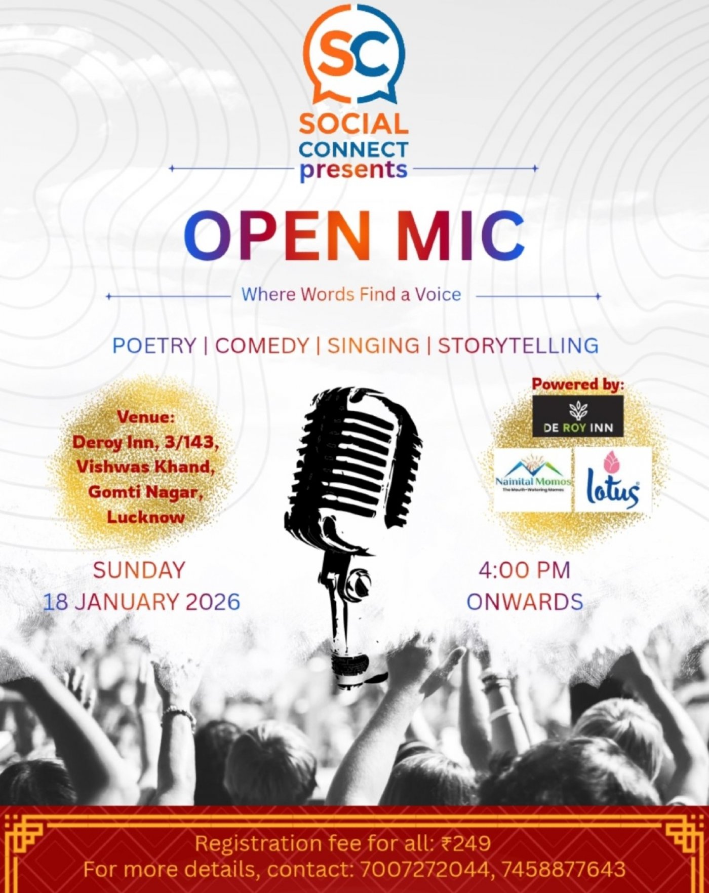 An open platform for Lucknow's creative souls! This open Mic is for everyone who wants to express their voice, words and talent in front of live audience.