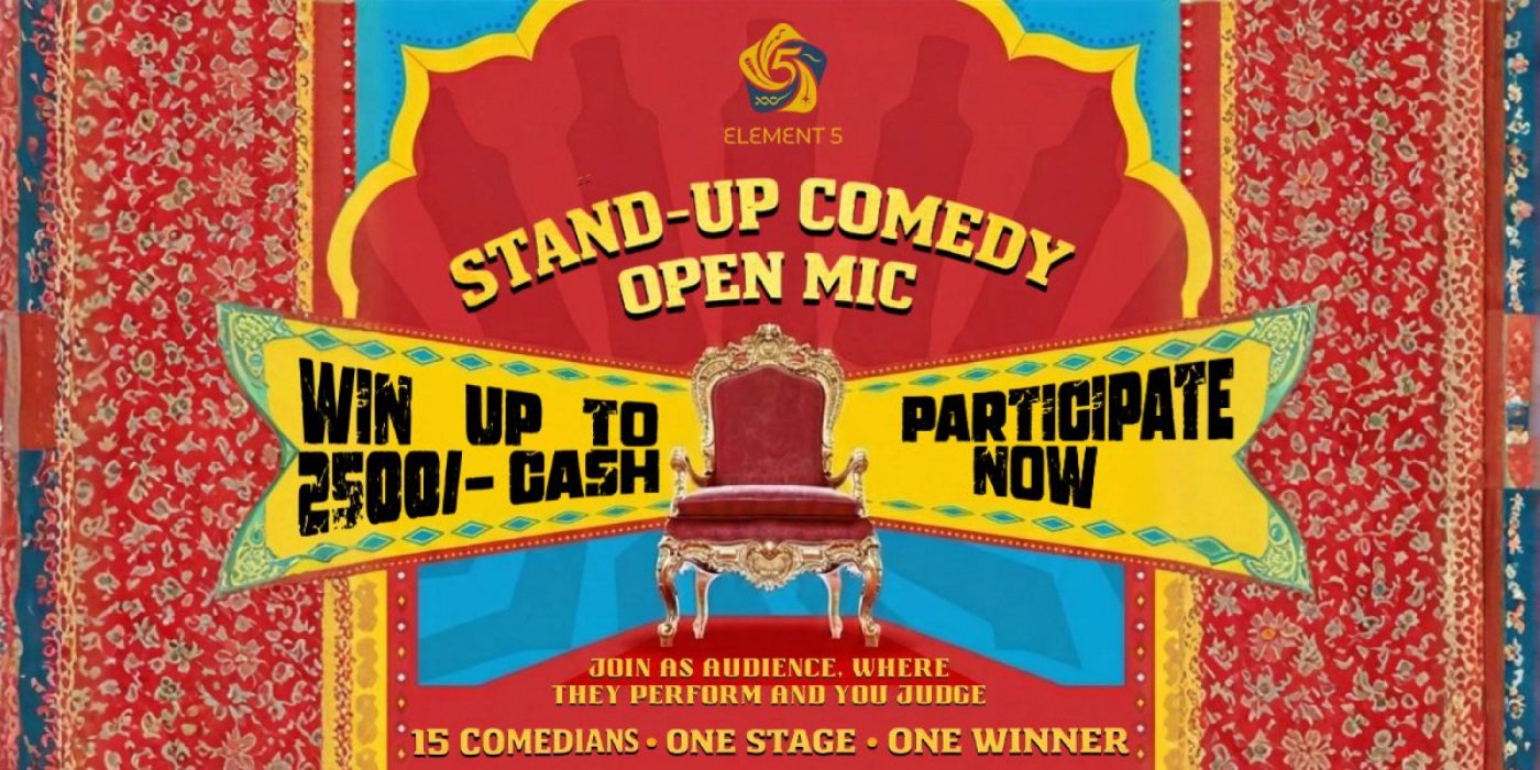 Element 5 presents a high-energy Stand-Up Comedy Open Mic Competition — where raw talent meets real opportunity.