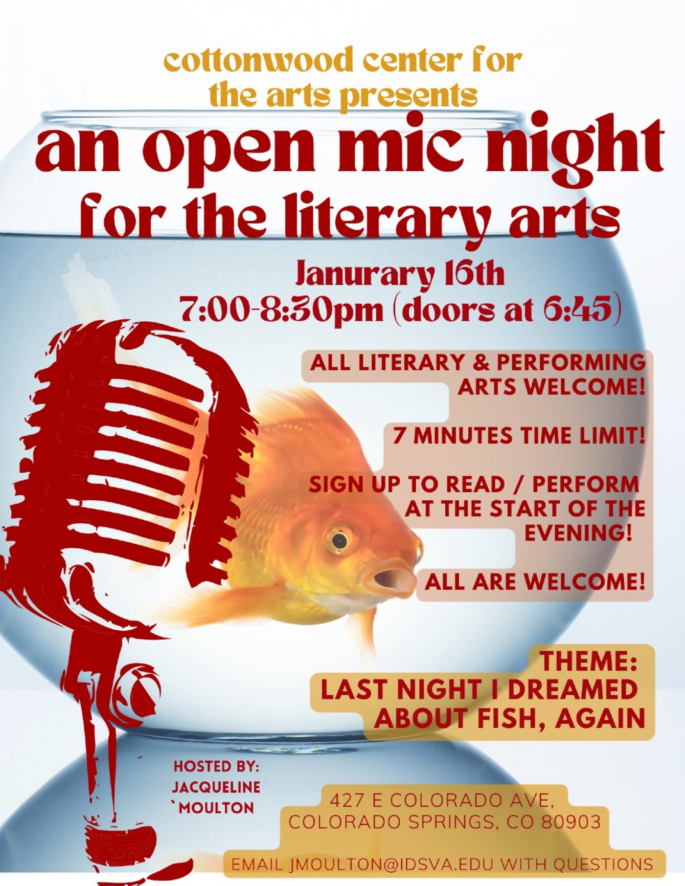 If you want to perform you will sign up at the start of the event! Once you walk into the main gallery of Cottonwood you will see a sign up table.
