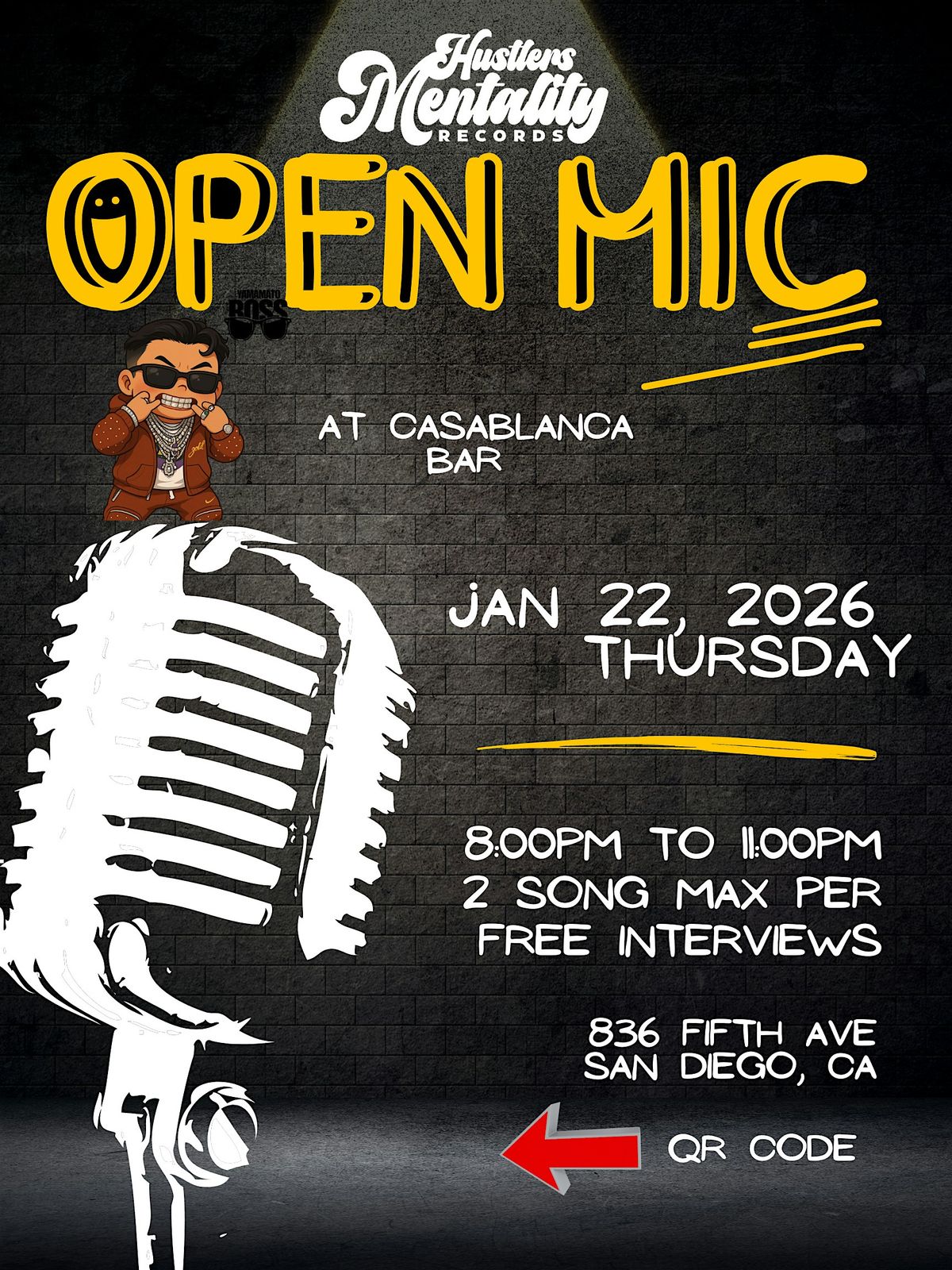 Hustlers Mentality Records is opening the mic at Casablanca Bar for the next wave of talent. Two songs. Real stage. Free interviews. No shortcuts.