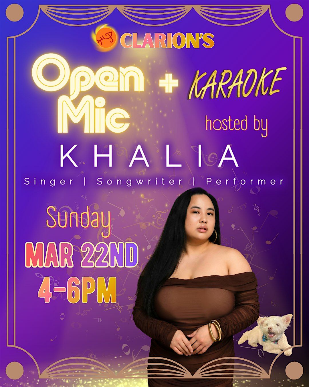 Bay Area soulful singer Khalia returns to Clarion Performing Arts Center as the monthly open mic host — a full-circle moment at the very space where her music journey began. As the first open mic she ever attended, Clarion helped shape Khalia into the artist she is today. With a focus on connection, encouragement, and community, she’s excited to help spotlight local musicians and continue cultivating an inclusive, uplifting space for artists of all levels.