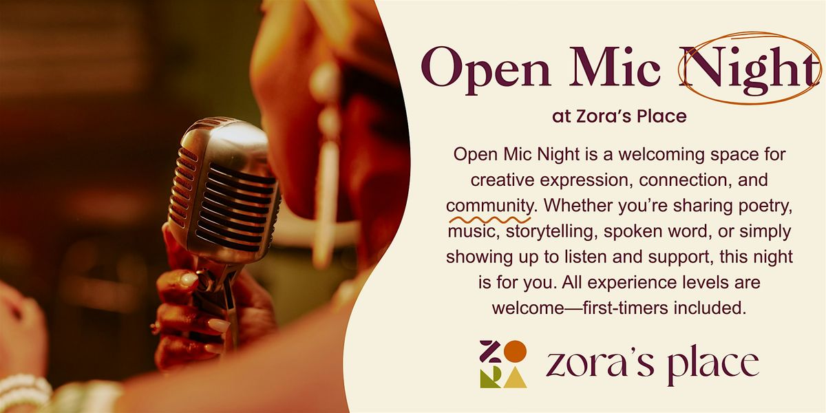 Zora’s Place invites you to our first Open Mic Night, a welcoming space for creative expression, connection, and community.