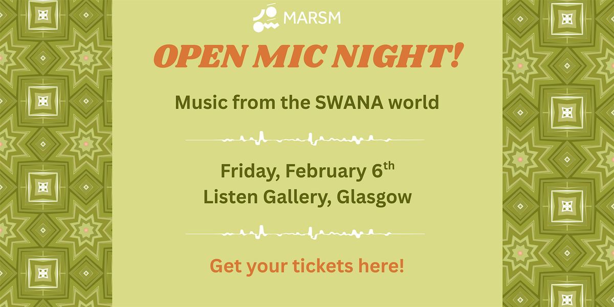 Come join us for an evening highlighting Glasgow-based artists from the SWANA region, as well as musicians playing music from across the SWANA world.
