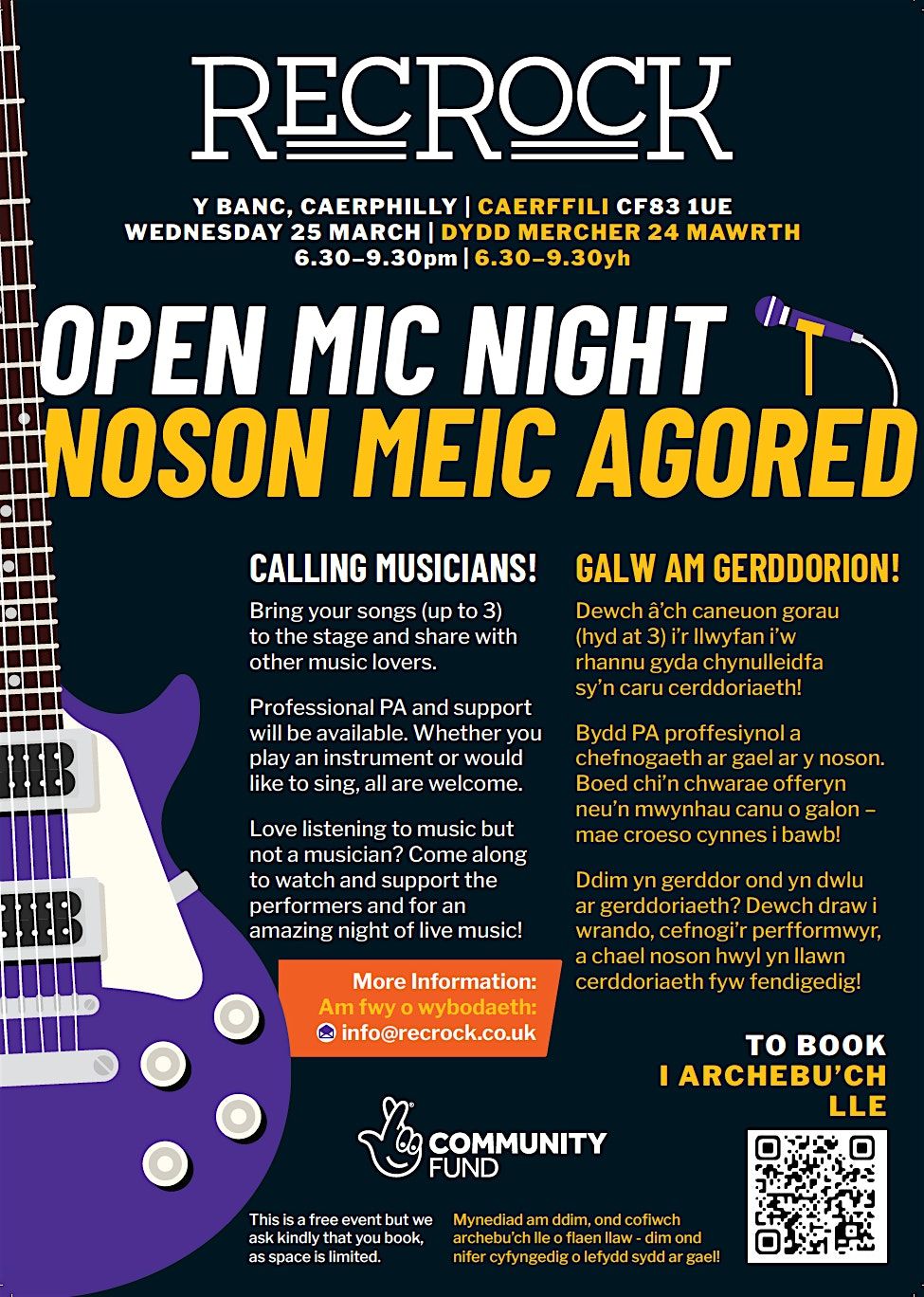 Ymunwch â Noson Meic Agored RecRock yng Y Banc, Caerphilly...DIGWYDDIAD AM DDIM!