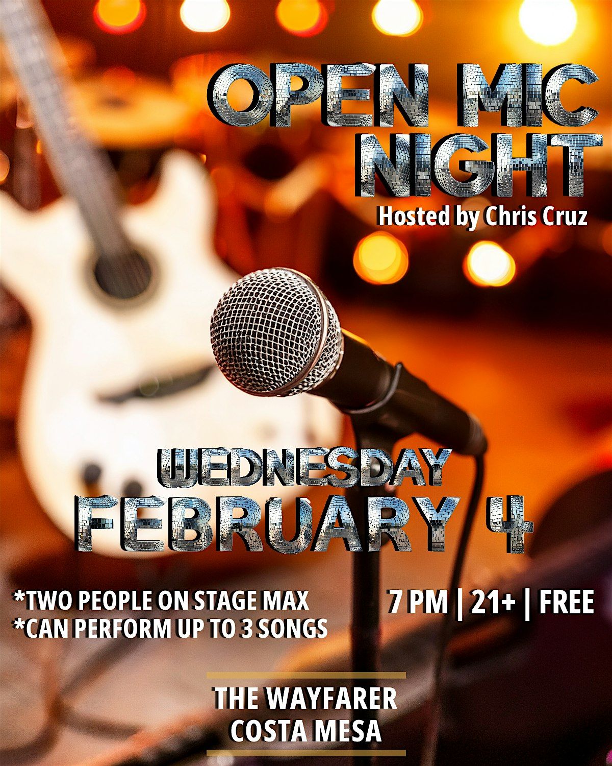 Open Mic Night with Chris Cruz on Wednesday, February 4 at The Wayfarer in Costa Mesa, CA!