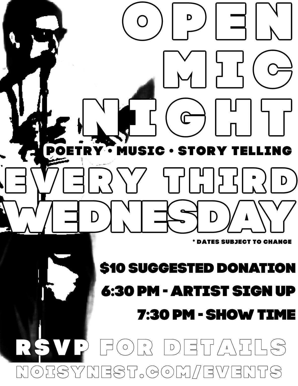 Welcome to Open Mic @ Noisy Nest! Get ready to showcase your talent or just come to enjoy some great performances. Join us the THIRD WEDNESDAY of every month at The Noisy Nest Play Space in Beverly Hills. Whether you're a seasoned performer or a first-timer, everyone is welcome to take the stage. Bring your friends for a fun & creative filled evening of music, poetry and story telling. Don't miss out on this opportunity to shine at Noisy Nest! See you there!