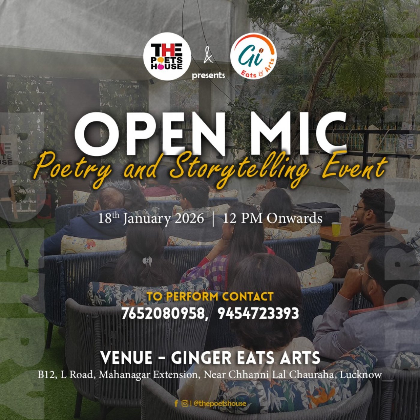 📍 Venue: Ginger Eats & Arts, B12, L Road, Mahanagar Extension, near Chhanni Lal Chauraha, Lucknow – 226006