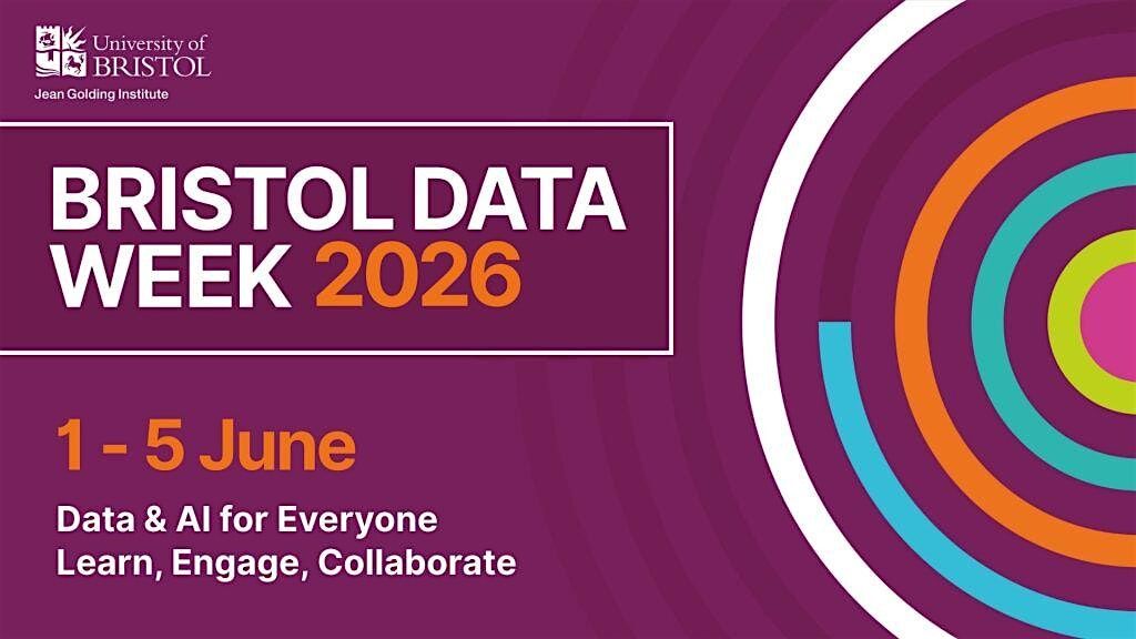 This event is part of Bristol Data Week 2026, organised by the Jean Golding Institute taking please from Monday 1 June – Friday 5 June 2026. Bristol Data Week is a university-wide umbrella event bringing together academia, industry, community organisations, policy makers and the public to explore the power of data science and AI in addressing real-world challenges.