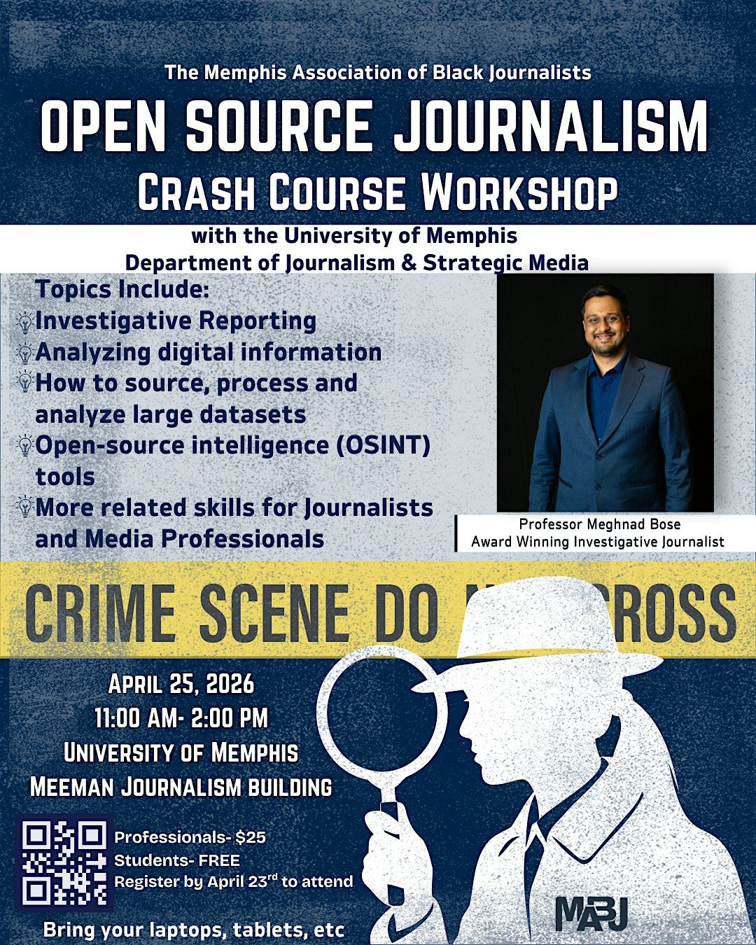Ready to dive into the world of Open Source Journalism? Join us for an awesome in-person workshop where you'll learn how to track down info, verify sources, and tell stories like a pro! Perfect for new and experienced professionals who want to sharpen their skills. Don’t miss out on this hands-on, fun crash course to boost your reporting game! PLEASE Bring your own devices for the workshop!