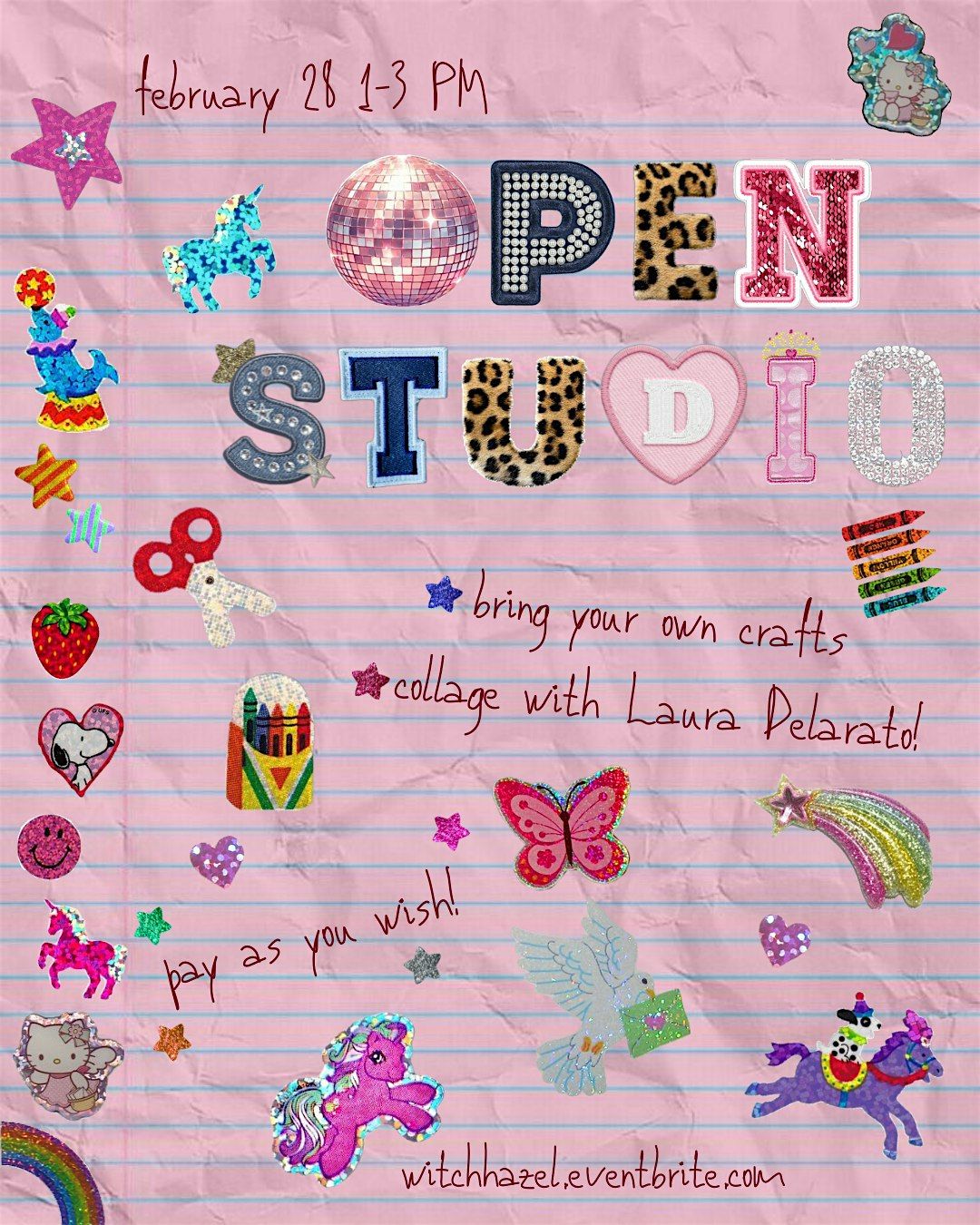 Join us in the Witch Hazel studio for two hours of open studio time and collage crafting, led by artist Laura Delarato. Collage supplies will be provided, but feel free to bring your own projects from home! All skill levels are welcome.