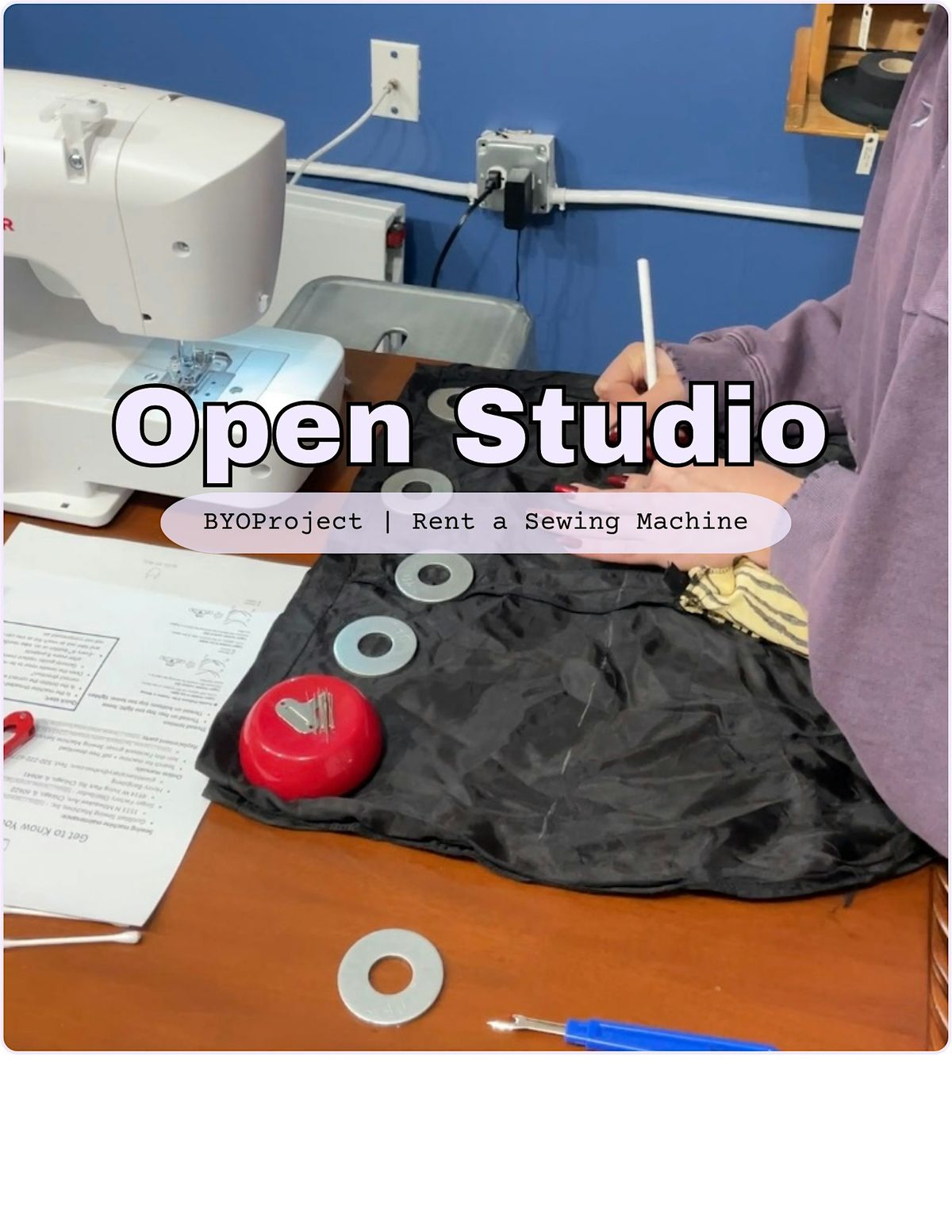 Whether you need assistance troubleshooting your sewing machine or want to darn a moth eaten sweater, receive professional guidance in our studio space. Don’t want to bring your sewing machine across town? Rent one of ours! You’ll have free range to shop through mending materials as well.