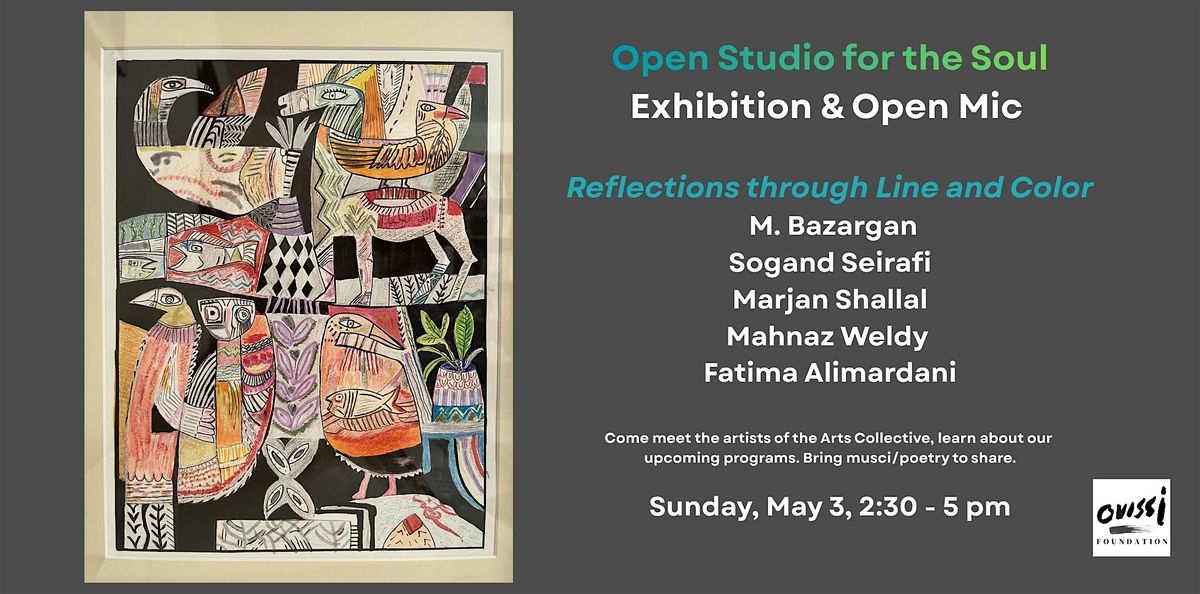 An exhibition of art works by Dr. Bazargan and his students, Sogand Seirafi, Marjan Shallal, Mahnaz Weldy and Fatima Alimardani will be on display. This exhibition, 'Reflections through Line and Color' brings together a diverse body of work that reflects individual exploration, technical development, and a deep engagement with visual language. Each artist offers a distinct perspective shaped through practice, observation, and creative inquiry.