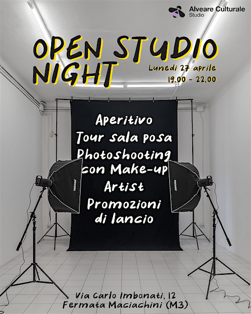 Una serata aperta per scoprire da vicino la sala posa di Alveare Culturale, allestita e pronta a mostrarsi in tutta la sua versatilità.