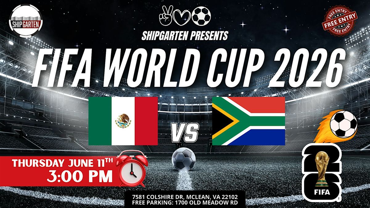 OPENING NIGHT. HISTORY STARTS HERE. The World Cup kicks off.Mexico steps onto the global stage.South Africa brings pride, rhythm, and fight. This isn’t just another match.This is the beginning of everything. The first whistle. The first goal. The first eruption of the tournament. And there is no better place to experience it than Shipgarten. WORLD CUP 2026 – OPENING MATCH Mexico vs South Africa Energy. Culture. Passion. Two nations that bring noise, color, and intensity from the first minute. This is not a casual Thursday. This is a World Cup kickoff. WHERE TYSONS WATCHES THE WORLD CUP Shipgarten transforms into: Massive screens & stadium-level sound $40 Mix & Match Beer Buckets (5 – 16oz cans) 100+ beer varieties available All ages welcome (21+ to drink) The most energetic World Cup crowd in Tysons This isn’t a quiet viewing party. It’s full matchday energy from kickoff to final whistle. INAUGURATION NIGHT VIBES Opening match means: Doors open early Crowd builds fast Every goal feels bigger The party lasts all night Come early. Wear your colors. Bring your crew. Let’s start the World Cup the right way. GAME DAY DETAILS Thursday, June 11th Kickoff: 4:00 PM Shipgarten – 7581 Colshire Dr, McLean, VA 22102 FREE & large parking at 1700 Old Meadow Rd FREE ENTRY – Pay only for what you consume Coming with your crew? Upgrade your match day.