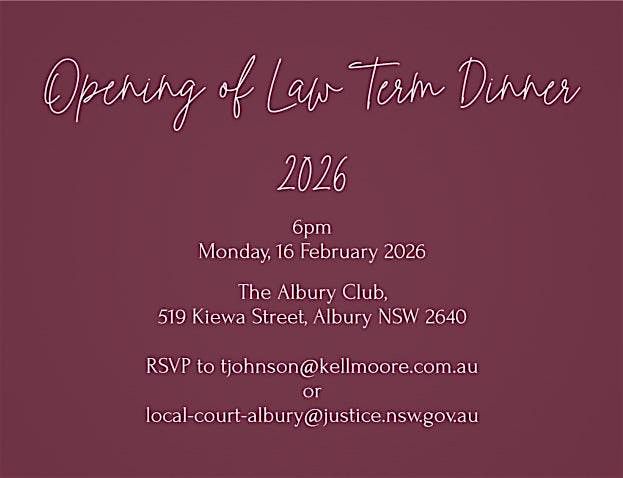 The Albury & District Law Society invites you to celebrate the opening of the 2026 Law Term. Please join us for dinner and formalities.About this Event