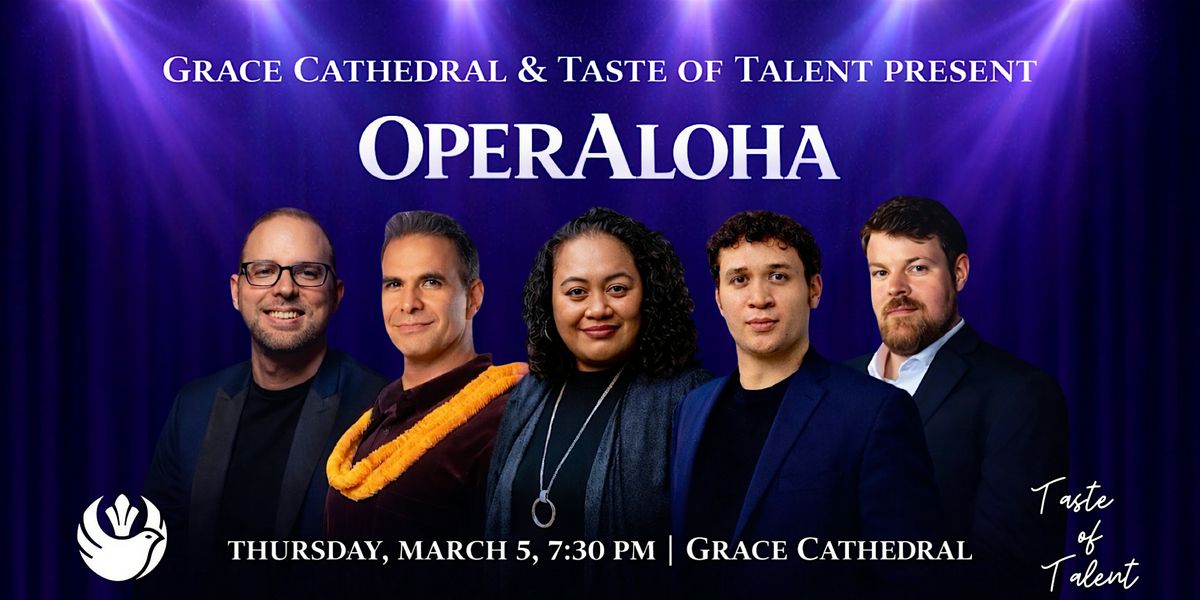 Join us for Opera Aloha, a concert that blends opera with the diverse musical traditions of Hawaiʻi, presented by global opera talent! Now in its 4th annual tour, Opera Aloha has been joyfully received on Hawaiʻi Island and Oʻahu, and we are thrilled to welcome this special program to Grace Cathedral as part of this year’s tour. This is a rare opportunity to experience a concert sung in an extraordinary range of languages, including Italian, French, English, Māori, Samoan, Native Hawaiian, Portuguese, Tagalog, Japanese, Chinese, and Korean, offering a musical journey you truly will not find anywhere else.