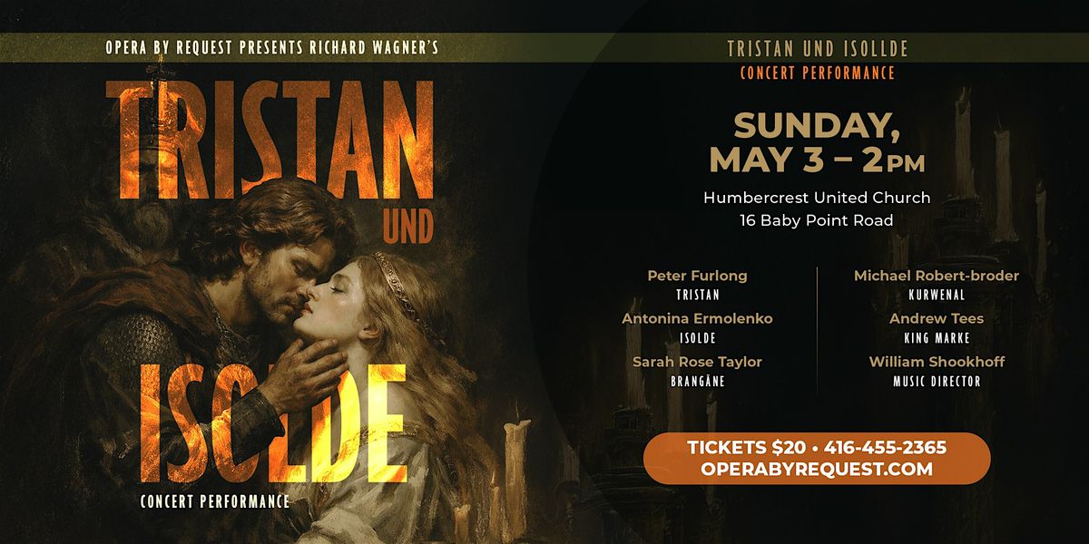 Opera by Request presents Richard Wagner’s monumental masterpiece Tristan und Isolde in an intimate concert performance with piano accompaniment. A work of sweeping passion, longing, and transcendence, Tristan und Isolde stands as one of the most influential and emotionally powerful operas ever written.