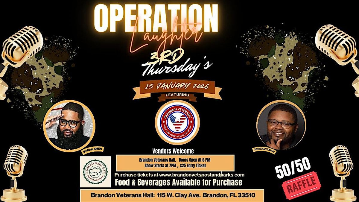 #OperationLaughter #ComedyNight #3rdThursdays #BrandonVeteransHall #VeteransSupportingVeterans #CommunityComedy #LaughWithPurpose