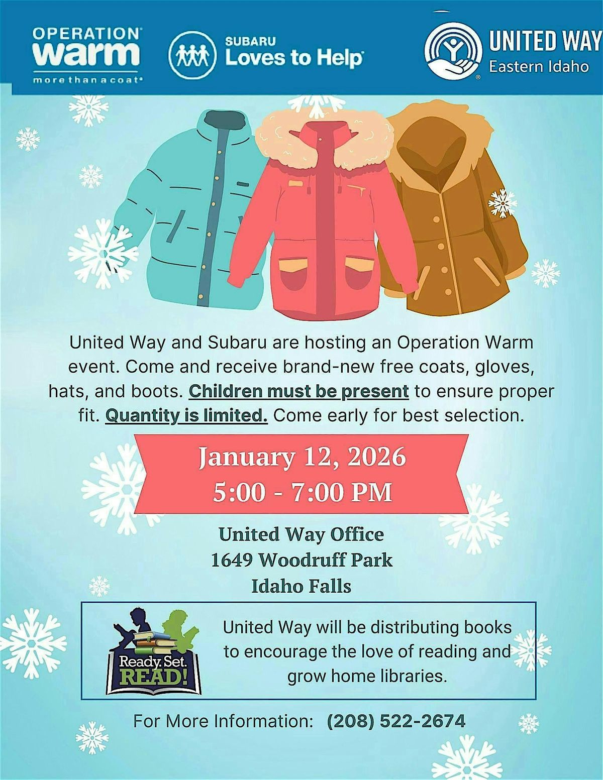 United Way Eastern Idaho is partnering with Wackerli Subaru to provide FREE winter clothing to help families stay warm during winter months.