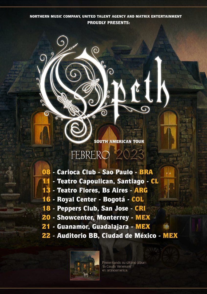 Opeth at Arena Ciudad de México✨ Discover the extraordinary at Opeth Ciudad de México Tickets, where magic meets reality in ways you've never imagined! 🏛️ Set in Arena Ciudad de México nestled in bustling Ciudad de México, MX, this event promises to be a landmark occasion. 📅 Taking place on November 11th, 2026 at 09:00 PM, it's going to create an atmosphere where every moment becomes a cherished memory. 🌟 Immerse yourself in an experience crafted with attention to every detail, designed to surprise and delight at every turn. They have worked tirelessly to ensure this event exceeds all expectations, bringing together elements of entertainment, innovation, and pure joy. 🎟️ Tickets are available at 111.18 EUR. 🎊 Don't miss your chance to be part of this remarkable journey!