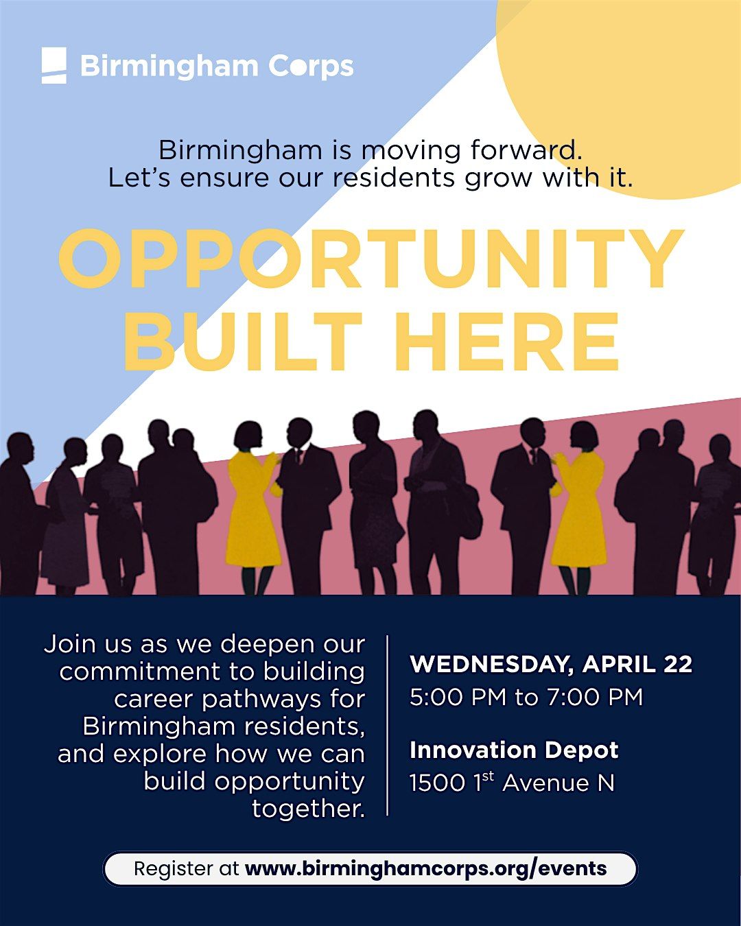 You are invited as Birmingham Corps deepens its commitment to building the bridges that connect this city’s talent to its future and invites Birmingham’s employers, partners, and civic leaders to grow with us.