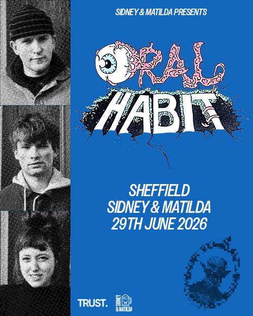 Oral Habit deal in what they call “the ear-rattling psychic dream of choked-up acid punks”,a sound that feels overpowering, explosive and intense: you could say it’s more closelyaligned to the disoriented racket of mid-60s freakbeat than the pie-eyed beatitudes of theSummer of Love; equally you could suggest it’s a very contemporary form of psychedelia,rebooted for the troubled, disturbing climate of 2025.Initially a home recording project of frontman Charlie Hales now expanded into a trio withthe addition of his brother Felix on drums, and his partner Tippi Lewis on bass, Oral Habit’srecent EP Garage Frock! offers four short, sharp bursts that expand on the sound of itspredecessor, Cardiovascular Spectacular, throwing up an impressively bloody and chaoticmelange of guitar fuzz, echo-drenched vocals, feedback-drenched solos and primitive riffsthat feels as if it was recorded with everything turned up to full volume, including themellotron that decorates I’m Free. Even the one track that initially presents as a ballad, TheCoast, eventually gives way to a crushing, sludgy grind. As statements of intent go, it’simpressively full-on, as is Charlie’s explanation of the band’s sonic philosophy: “if abutton’s there, it’s there to be pushed.” - Alexis Petridis