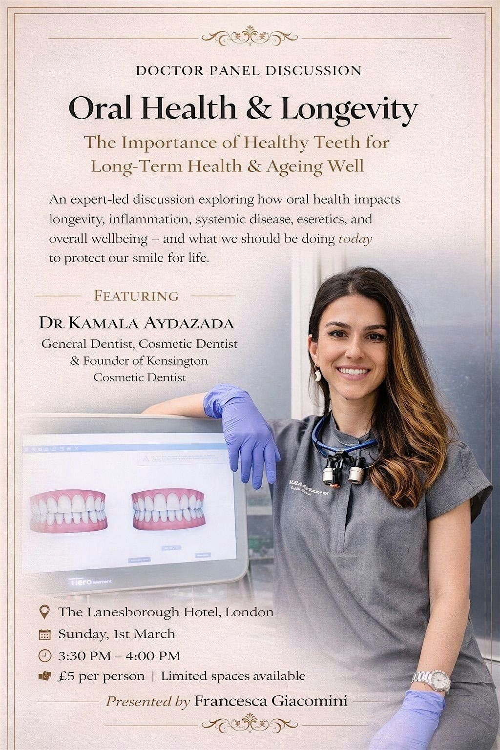 An expert-led discussion exploring how oral health impacts longevity, inflammation, systemic disease, eseretics, and overall wellbeing - and what we should be doing today to protect our smile for life.