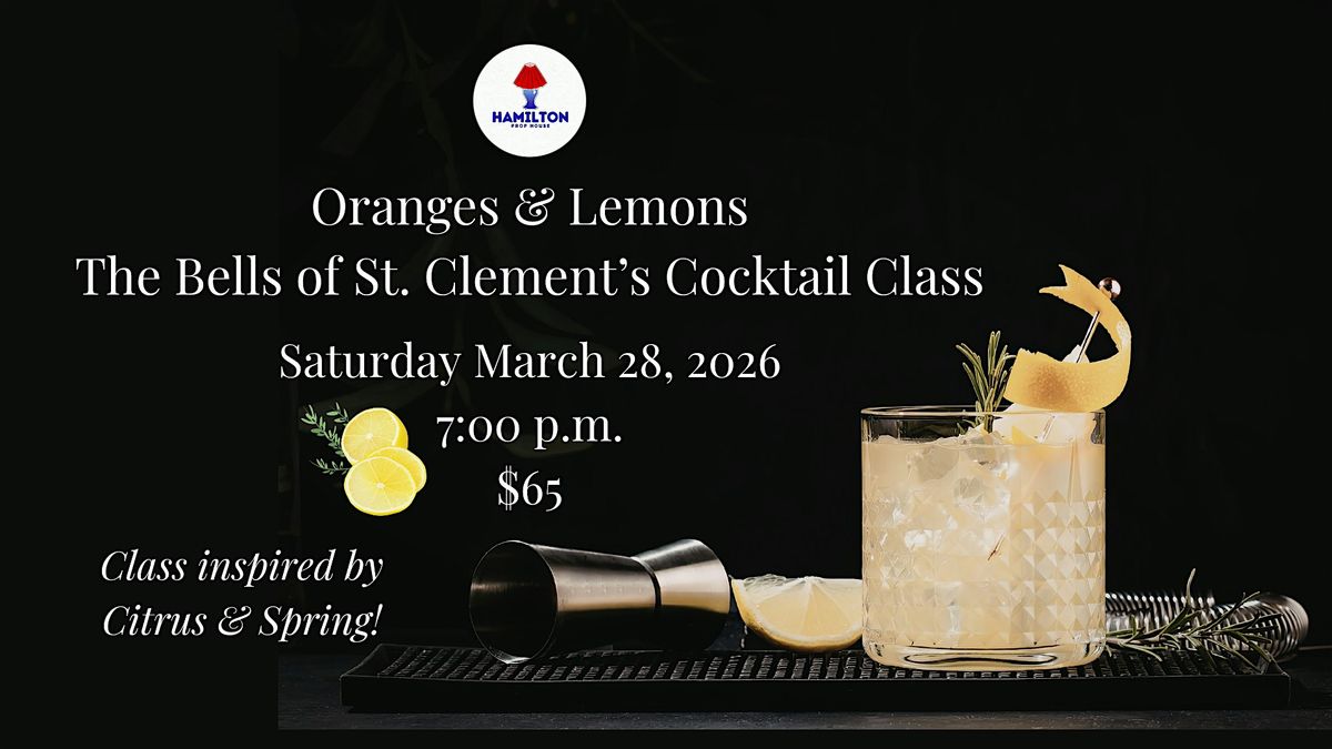 Celebrate the bright flavours of citrus and the welcome arrival of spring with Oranges & Lemons: A Bells of St. Clement’s Cocktail Class at Hamilton Prop House.