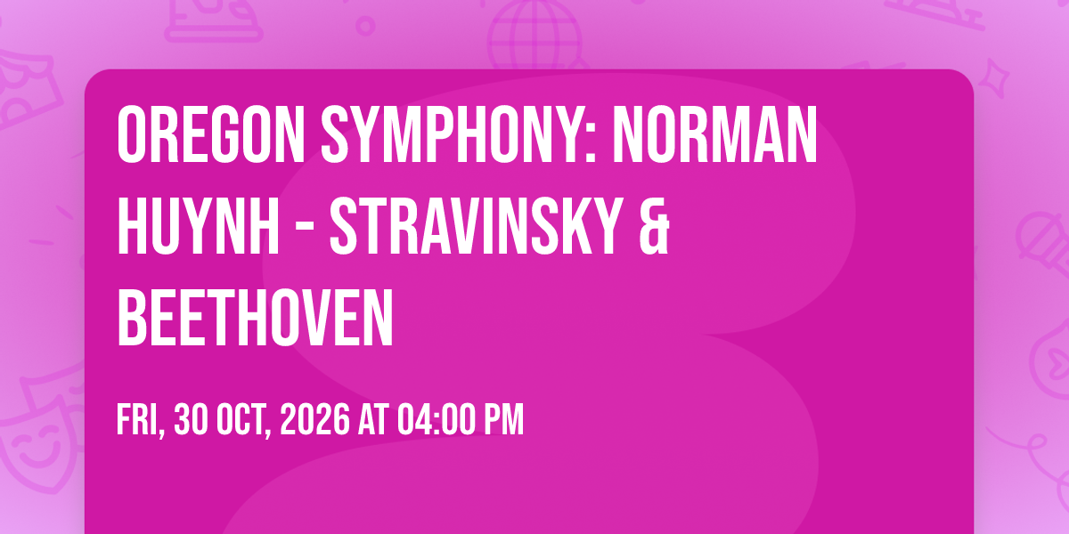 🌟 Journey into wonder at Oregon Symphony: Norman Huynh - Stravinsky & Beethoven, where extraordinary experiences await around every corner! 🏛️ Set against the backdrop of Arlene Schnitzer Concert Hall in dynamic Portland, OR, this event promises to exceed all expectations. 📅 Join us on October 31st, 2026 at 04:00 PM for a celebration that combines innovation, entertainment, and community spirit in perfect harmony. ✨ There will be an atmosphere where memories are made and stories come alive, ensuring every guest experiences something truly remarkable. 🎊 This is more than just an event; it's a journey into the extraordinary!http://maps.seatics.com/ArleneSchnitzerConcertHall_EndStage_2024-01-04_2024-01-04_1009_01042024_101300_SVGC_tn.gif