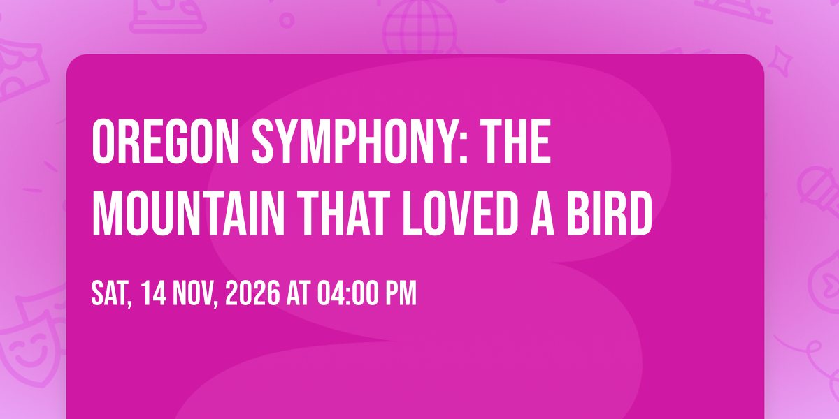 ✨ Enter a world of endless possibilities at Oregon Symphony: The Mountain That Loved a Bird, where every moment tells a story! 🏛️ The stunning Arlene Schnitzer Concert Hall in vibrant Portland, OR transforms into a realm of wonder on November 14th, 2026 at 04:00 PM. 🌟 They have crafted an experience that goes beyond the ordinary, combining elements of surprise, delight, and pure entertainment. Every detail has been thoughtfully considered to ensure your journey with us is nothing short of extraordinary. 🎯 Join fellow adventure seekers and memory makers in this celebration of imagination and innovation. 🎊 Reserve your spot today and be part of something truly special!http://maps.seatics.com/ArleneSchnitzerConcertHall_EndStage_2024-01-04_2024-01-04_1009_01042024_101300_SVGC_tn.gif