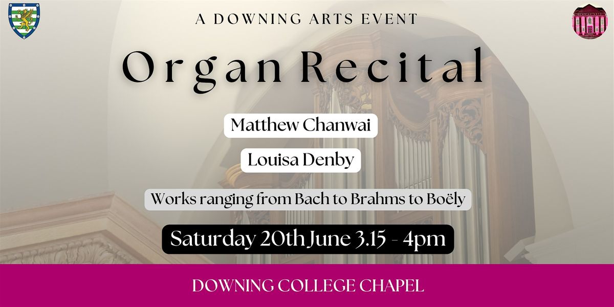 Organ Scholar Matthew Chanwai and Director of Music Louisa Denby present a varied programme of works ranging from Bach to Brahms to Boëly.