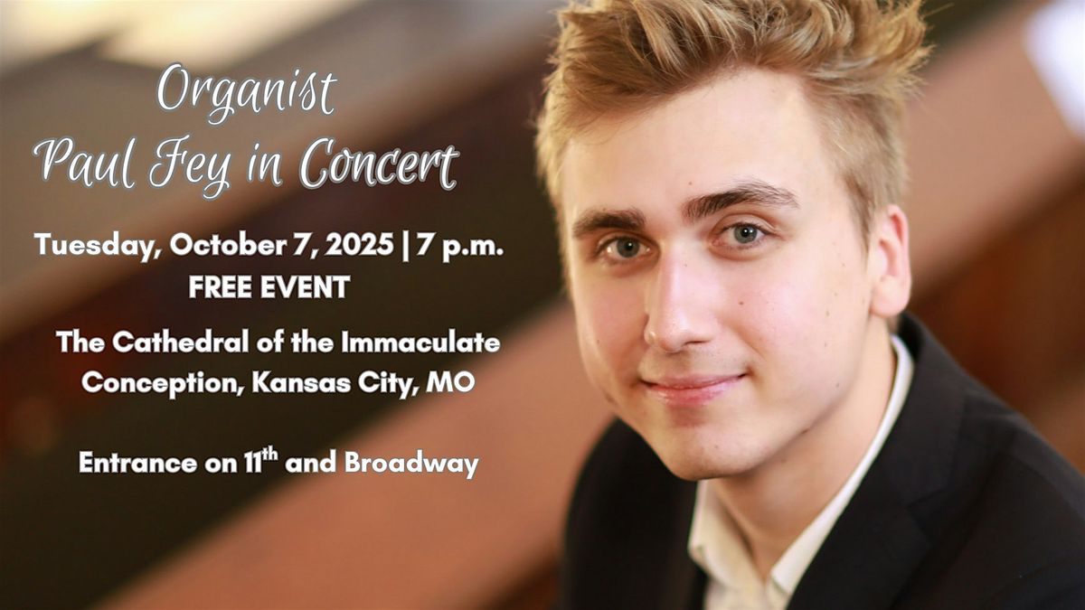 Welcome to Organist Paul Fey in Concert! Join us for a mesmerizing evening of music at The Cathedral of the Immaculate Conception. Experience the incredible talent of renowned organist Paul Fey as he fills the cathedral with beautiful organ music. Paul is a prolific YouTuber and social media presence, with his performances taking him throughout the world. This in-person event promises to be a night to remember. Don't miss out on this unique opportunity to witness a master musician in action. Get your free tickets now and prepare to be amazed!