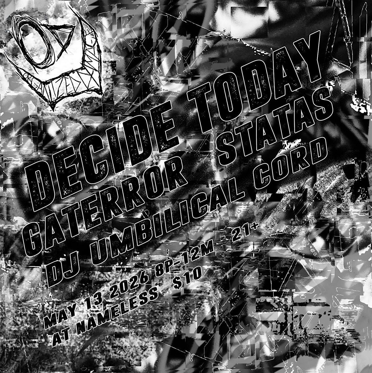 Decide Today has been the primary project of Robert Inhuman, along with collaborators, following the end of the original Realicide band at the turn of 2011. Sonically it has spanned genres such as industrial, breakcore, darkwave and ambient, while its subject matter maintains focus akin to anarcho-punk and radical hiphop. The project's mission is a contribution to various liberation movements, whether decades ongoing or emerging from the current political climate. Decide Today is based in Cincinnati, has toured Turtle Island (North "America") extensively, as well as many ventures across Europe, South America, and Australia.